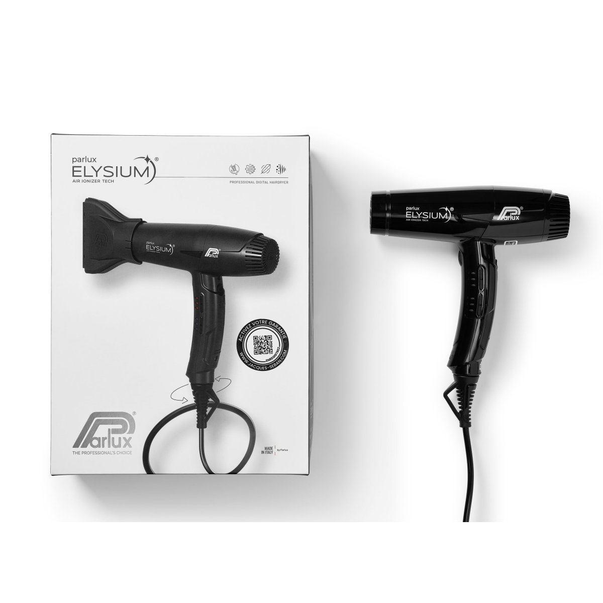 Τεχνολογία Ιονιστή Αέρα: μειώνει το φριζάρισμα και ενισχύει τη λάμψη. Χάρη στην Τεχνολογία Ιονιστή Αέρα, το Parlux ELYSIUM® εκπέμπει αρνητικά ιόντα επιταχύνοντας τη διαδικασία στεγνώματος και εξουδετερώνοντας το στατικό ηλεκτρισμό. Το αποτέλεσμα είναι απαλά, μεταξένια και λαμπερά μαλλιά, χωρίς φριζάρισμα.